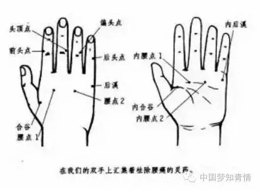 合谷与内合谷,后溪与内后溪,腰点1与内腰点1,腰点2与内腰点2。