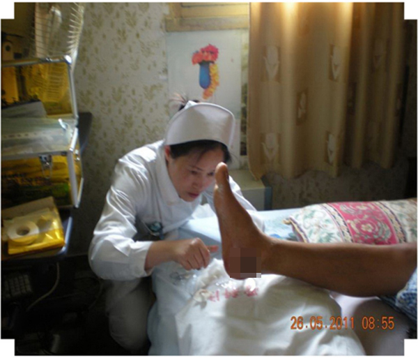在30年的一线临床护理中,蔡蕴敏摸索出了独特的“问(病史病程)-闻(异味种类)-评(影响因素)-判(创口性质)-断(确定方案)”五步法伤口护理模式,在处理严重压疮、老烂脚、糖尿病足等久治不愈的疑难伤口方面取得了突出成绩。