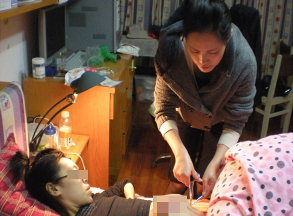 得知这个消息后,蔡蕴敏决定为小雪上门护理。在此后的11个月里,蔡蕴敏风雨无阻,为小雪上门换药84次,她所在的护理团队成员受到感召,也上门为小雪服务了36次。由于小雪病情特殊,家里的条件又不比医院,每次给她换药,蔡蕴敏和其他护理人员都要弓着身子操作近2小时,腰酸背痛,大汗淋漓。