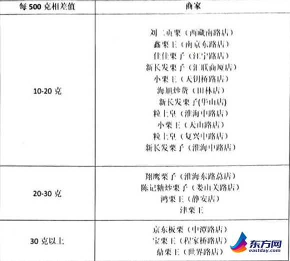 不过,在重量方面,据消保委给出的最新数据显示,每500克相差值,陈记糖炒栗子(娄山关路店)却少了20-30克,佳佳栗子(江宁路店)则在10-20克之间。记者不禁想说,好吃是好吃,也不能缺斤少两,诚信经营还是最重要。