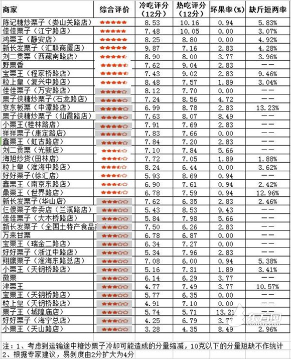 上海市消保委组织专家、消费者、媒体记者对沪上37家店铺的糖炒栗子进行测评