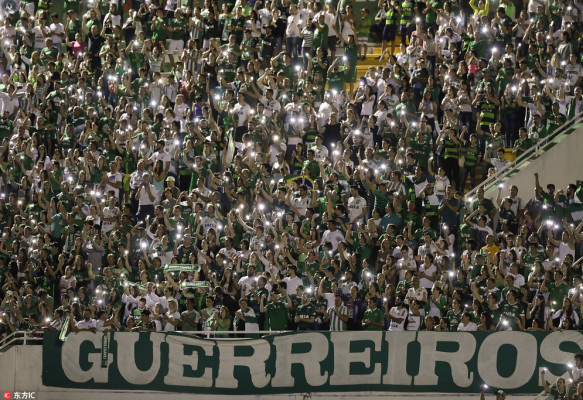 12月1日本是南美杯决赛首战的日子。但遭遇飞机失事的巴西沙佩科恩斯的球员却无法站上赛场。他们的决赛对手哥伦比亚国民竞技依然号召球迷来到球场,4.5万球迷们用蜡烛和歌声悼念死难者。