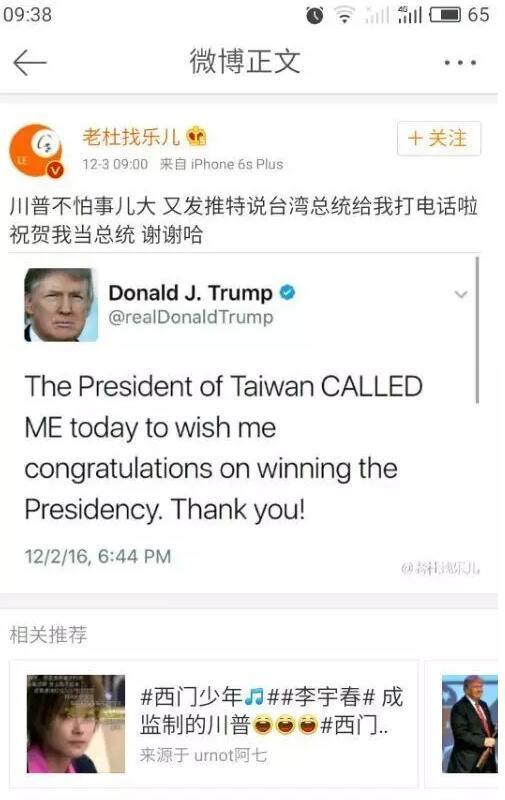估计大家最想问,这通电话意味着什么?是美方对台政策的可能转向,还仅仅是礼貌上的一次性联系?又或者,是因为特朗普家座机没来电显示,所以就直接接了?