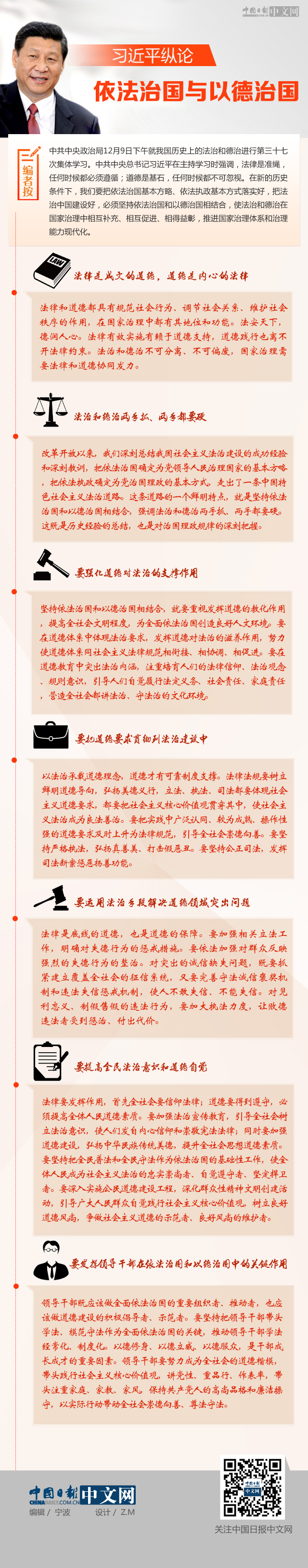 习近平强调,改革开放以来,我们深刻总结我国社会主义法治建设的成功经验和深刻教训,把依法治国确定为党领导人民治理国家的基本方略,把依法执政确定为党治国理政的基本方式,走出了一条中国特色社会主义法治道路。这条道路的一个鲜明特点,就是坚持依法治国和以德治国相结合,强调法治和德治两手抓、两手都要硬。这既是历史经验的总结,也是对治国理政规律的深刻把握。