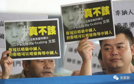 (图:今年10月,两名候任议员在宣誓就职时发出“辱华”声音,遭到香港民众抵制,后此二人被取消议员资格。)