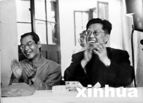 1954年6月,曹禺(右)和著名戏剧家、导演焦菊隐参加北京人艺院庆大会。