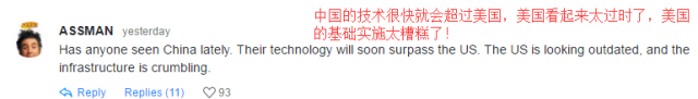 同样的,美国人当中也不乏“愤青”。其中有人评价道:过去的30多年间,美国忙于在全球打仗,支持恐怖主义,为“跟随美国”的政权撒钱,忙于争论是否该有性病疫苗,忙于争论学校是否该有男女混用卫生间。这时候中国在干嘛?他们忙于投资自己的教育、制造业和基础设施。