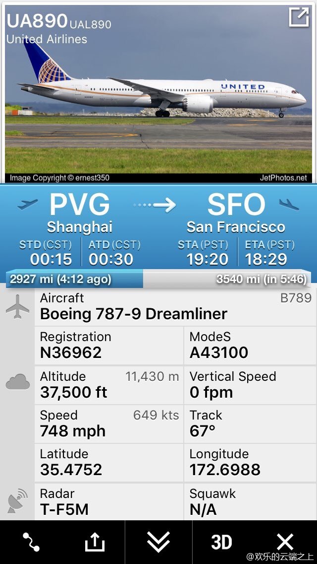 据认证为民航飞行员的网友@欢乐的云端之上微博消息:昨天有一个航班在推特火了,从上海飞往旧金山的美联航890,在上海起飞时间是2017年1月1日,在旧金山的到达时间却是2016年12月31日……