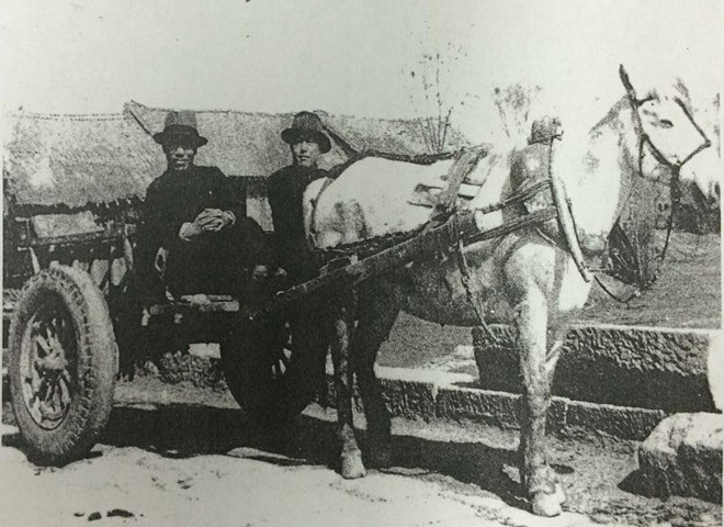 戴笠(左)同随员乘坐马车深入华北乡村视察指导情报工作
