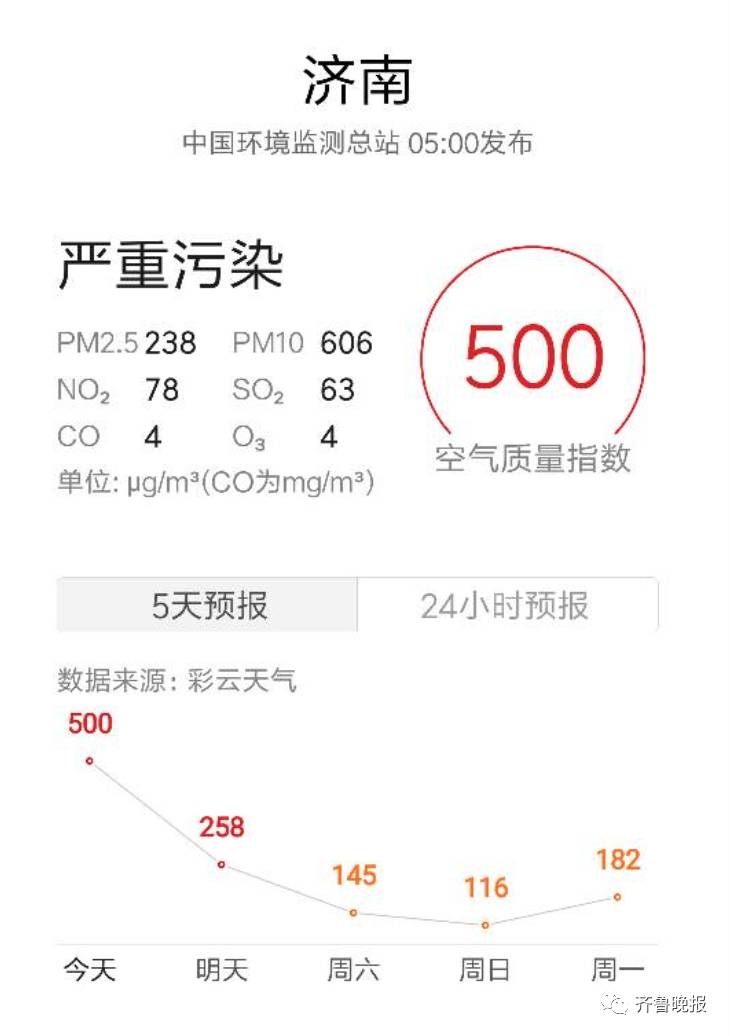 5日早上,济南的污染依旧严重。