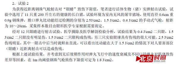 由此可见,1.8J/cm2这一数据,是基于对生物体要害部位之一眼睛的致伤力的考量得出。根据实验结果,并考虑到各种差异性因素,“在1m内阈值钢珠气枪致伤下限值可定位1.8 J/cm2”。