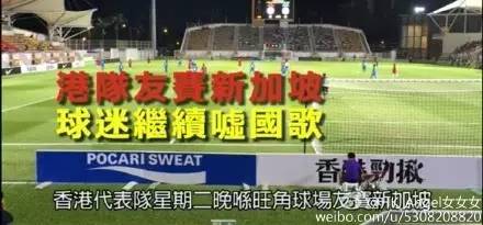 2016年10月11日,据港媒报道,中国香港和新加坡友谊赛的奏国歌仪式中,现场嘘声一片,甚至有现场观众竖起中指。