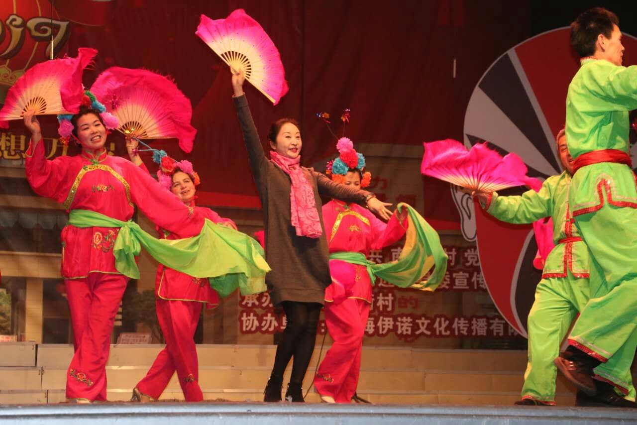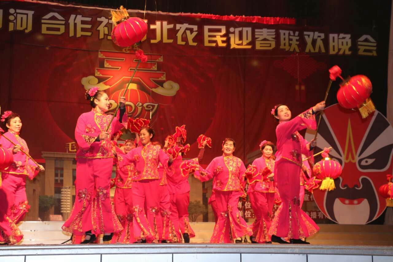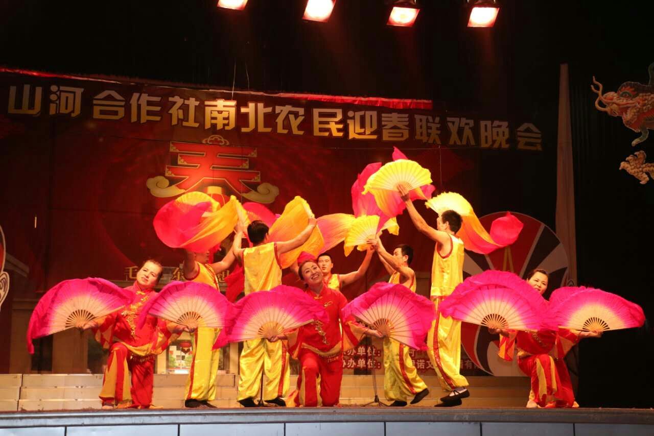 山河村党支部书记李环利致辞,山河农机合作社理事长史光福带头演唱了极富东北特色的二人转(看秧歌)。南街村调味品厂合唱团气势磅礴的大合唱(保卫黄河)配合南街村艺术学校学生们的精彩舞蹈拉开了联欢演出的序幕。山河村农民演出队的欢快的舞蹈(欢乐中国年)一下子就将联欢会引向了高潮。