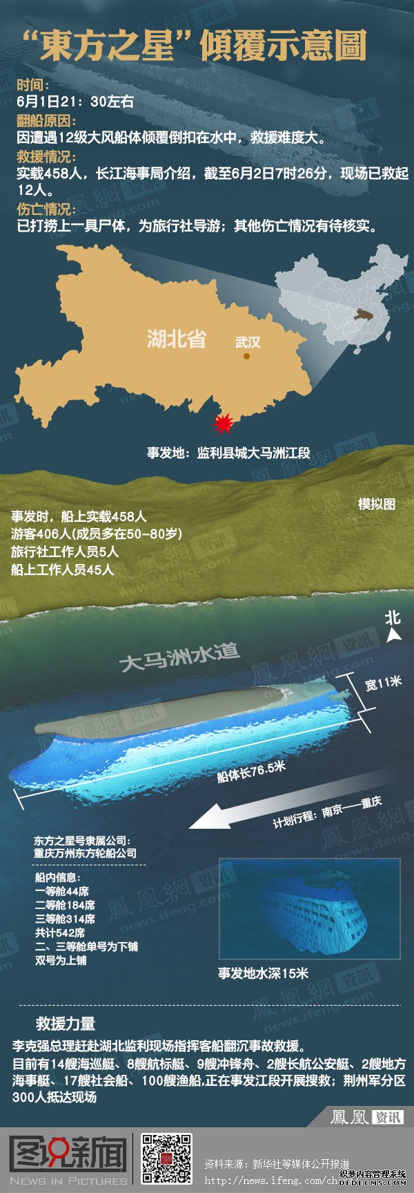 监利沉船事故#【“东方之星”倒扣水中救援困难】长江海事局有关负责人介绍,“东方之星”大型豪华游轮突遇龙卷风,在一两分钟之内倾覆倒扣在水中,当时船上大多数人都准备休息,因此,事故发生时该船没有向外发出任何求救信号,目前已沉入江中,呈倒扣状,给救援工作造成极大困难。(杨宏斌、王馨、田悦)