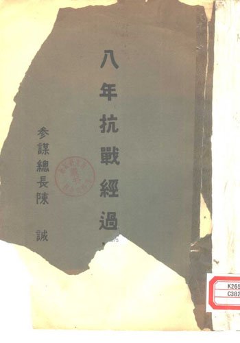 陈诚著《八年抗战经过概要》封面(有残缺)