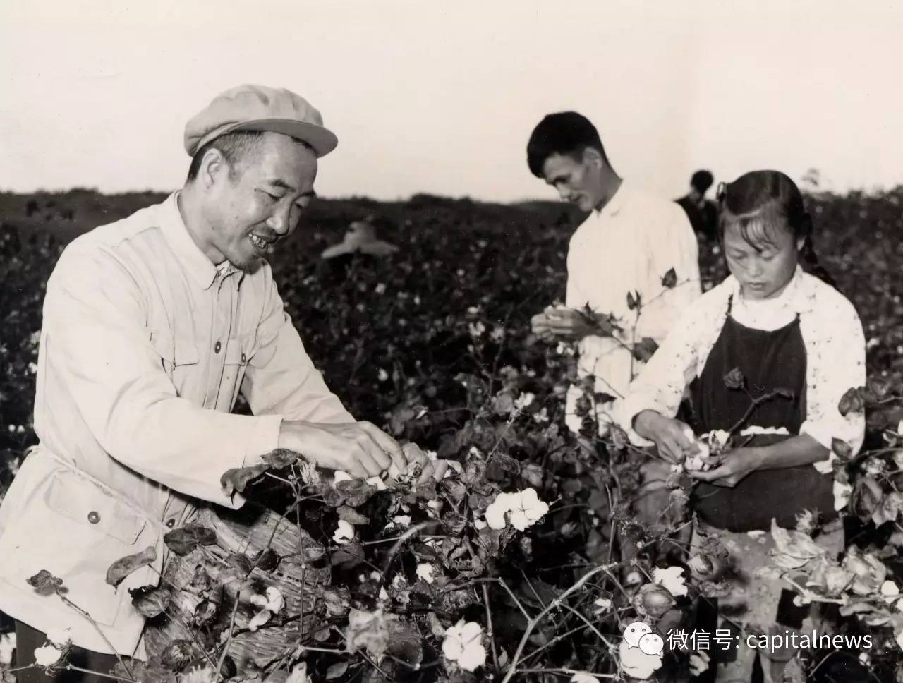 王任重(左一)在孝感县卧龙公社金星大队参加劳动