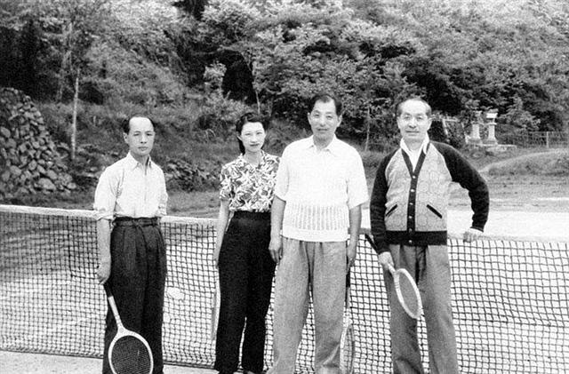 这张照片就是赵四小姐陪伴被软禁的张学良在台湾时期的照片,中间的两位就是,身材很是勾人。