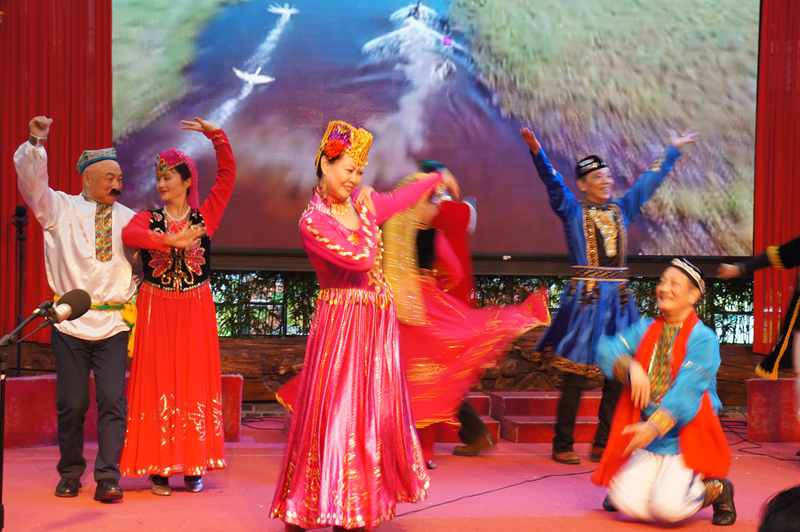 下面请欣赏舞蹈新疆舞《古丽与巴郎》,演出单位中国好知青歌舞团,感谢你们不辞劳苦,再次登台。谢谢!