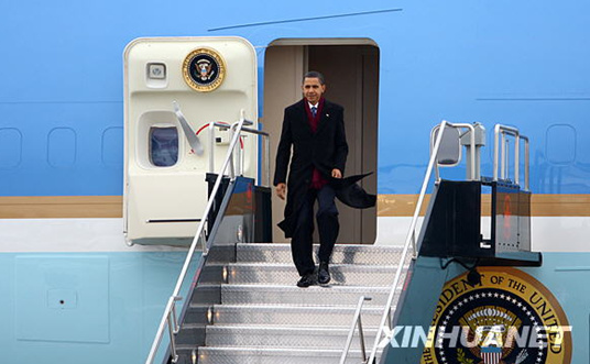 2009年2月19日,美国总统奥巴马抵达加拿大首都渥太华。新华社记者 杨士龙 摄