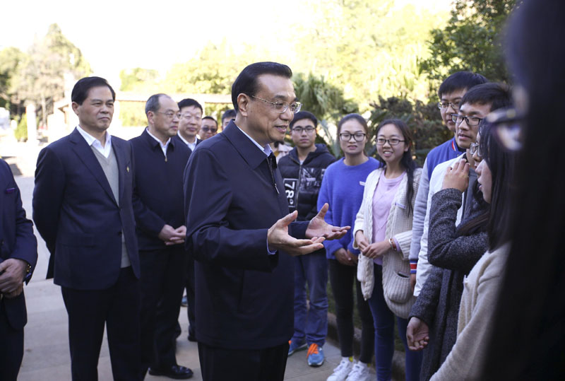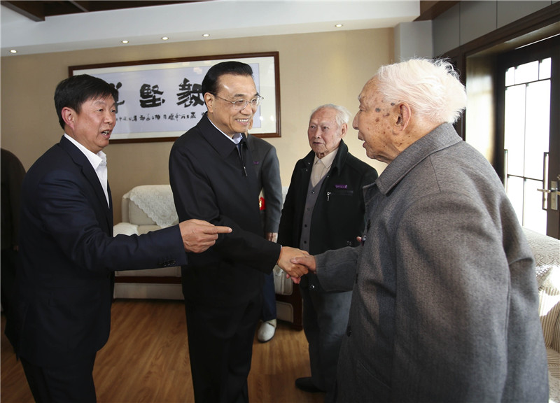 【春节前夕李克强昆明看望西南联大“老学长”】李克强24日在昆明看望西南联大老校友。他们均已年逾九旬,最年长者97岁。总理握着他们手动情称呼“老学长”。李克强说,在国家危亡之际,联大师生展现了我们民族最宝贵的品格,传承了民族精神和血脉。教育是国家的根基,感谢你们今天依然守护着联大精神。