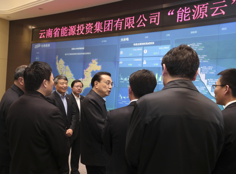 【李克强鼓励云南能投破题电网“水火平衡”难题】李克强24日考察云南能源投资集团。该公司将全省发电站联网,打造“能源云”,利用大数据调控发电,大大提高了清洁能源利用率。总理称赞这为解决电网“水火平衡”难题破了题。希望云能投不断提升技术,为西南地区乃至全国提供优质示范。