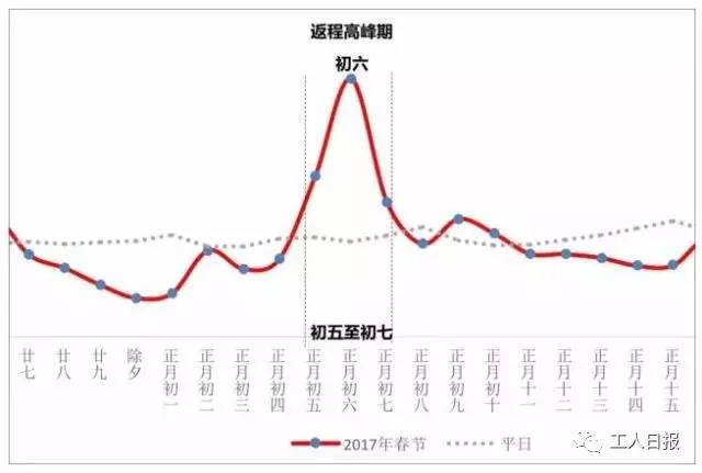 节后返程高峰期是初五、初六和初七(上班第一日),其中正月初六为全国高速拥堵最高峰,而从正月初八(上班第二日)开始全国高速拥堵下降并逐渐恢复到平日拥堵程度。