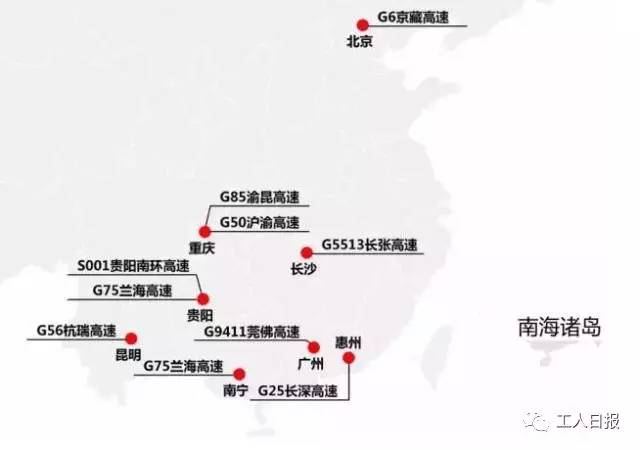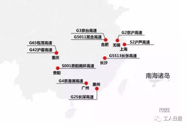 节中7天全国高速十大长时间易拥堵缓行路段分别是: