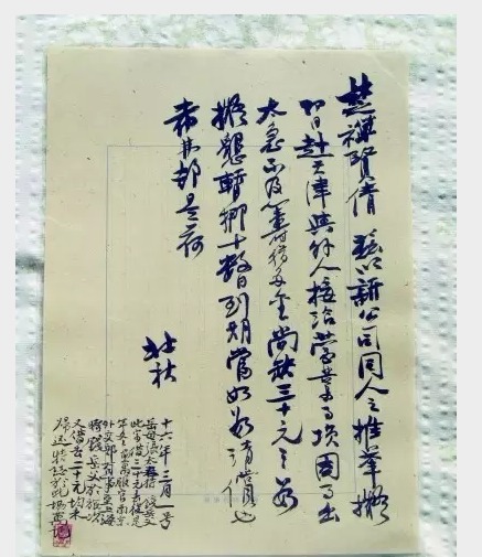 钱壮飞写给女婿的借条,这是钱泓存有的爷爷钱壮飞唯一的字