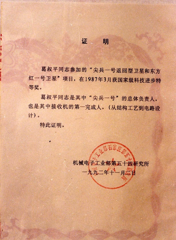 解放后,在党的关心、培养和高度信任下,父亲几十年来一直在国防科研第一线,从事军事通信领域的技术开发和设备研制工作。