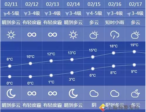 申城初雪过后,晴冷继续,从元宵节到情人节,虽然上海都是晴到多云的天气,但美中不足的是12、13日上海有轻度霾,最低温度也都徘徊在零度左右。