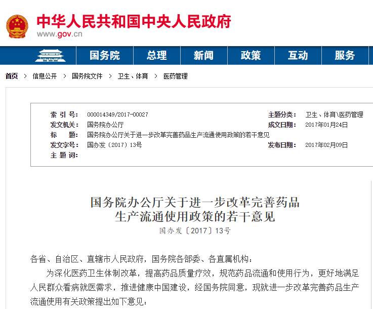 而医药代表背后的药品流通问题也引起国务院的重视。2月9日,国务院办公厅公布《关于进一步改革完善药品生产流通使用政策的若干意见》(以下简称“意见”),要求医药代表只能从事学术推广、技术咨询等活动,不得承担药品销售任务,其失信行为记入个人信用记录。