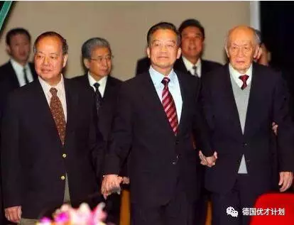 温家宝总理、朱光亚(右),李政道(左)一同手握手