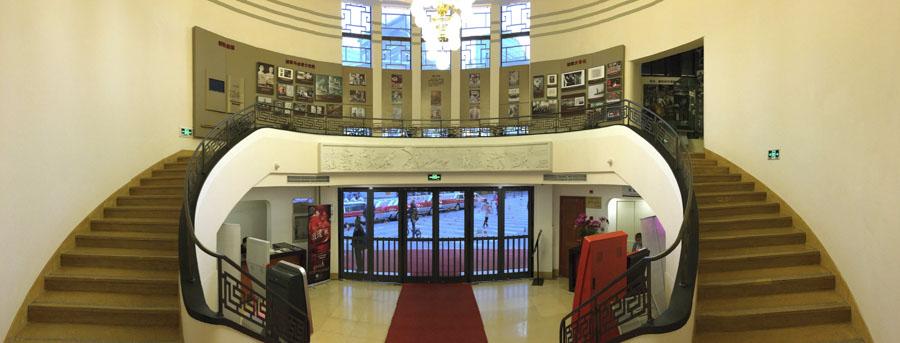 黄浦剧场一楼大厅,厅眉处是《义勇军进行曲》雕塑,1935年,国歌《义勇军进行曲》首次在上海黄浦剧场唱响并传播。