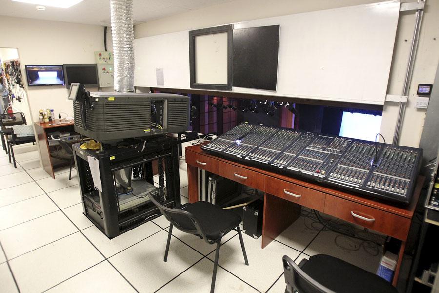 中剧场的控制室,除了控制灯光音响,还可以播放数字电影。