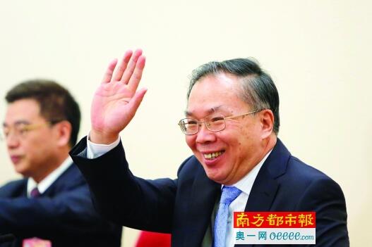 昨日下午,全国政协十二届五次会议新闻发布会,新闻发言人王国庆入场后与媒体记者挥手致意。 南都记者陈伟斌摄