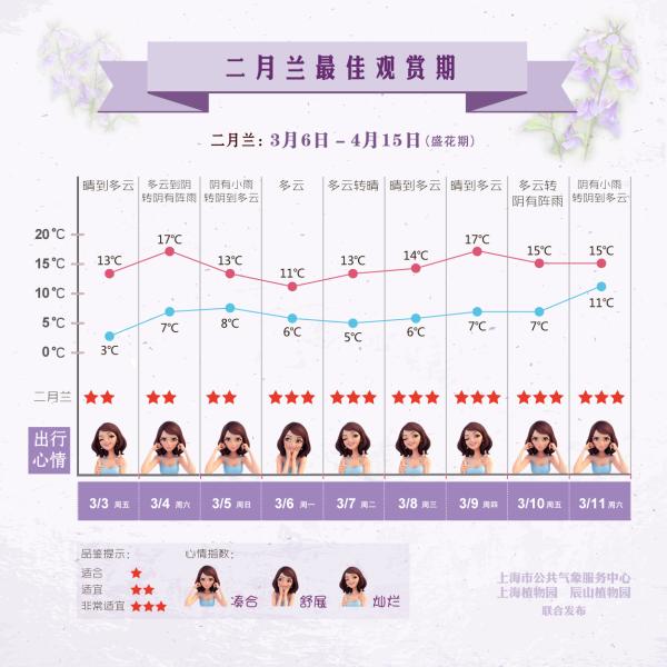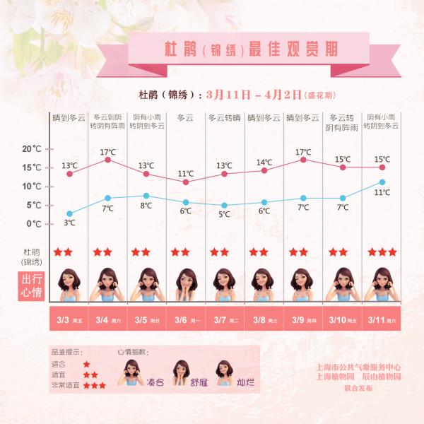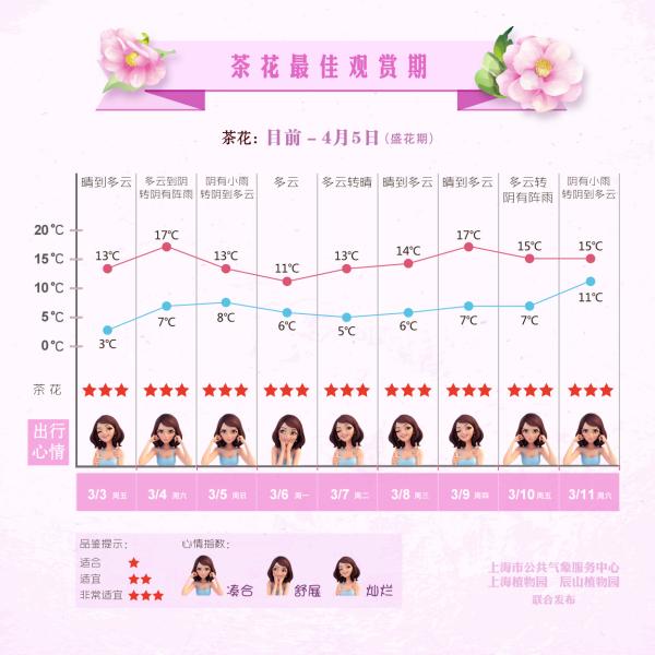 近日,上海气象部门发布《上海赏花指南第二期》,详细列出了上述花卉的最佳观赏期。上海正进入尾声的这个冬季,平均气温约8.3 ,较常年偏高2.2 ,创下了上海有气象记录140多年以来的最高纪录。气象专家表示,在这一背景下,大部分花种的开放都有“跑步前进”的趋势。