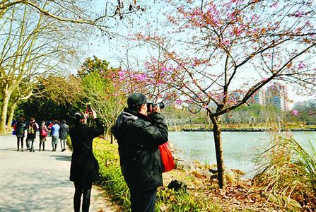 近日在上海各大公园,梅花、早樱、迎春花、白玉兰等花儿纷纷盛开。接下来的两个月内,晚樱、杜鹃、二月兰、茶花、海棠等花种也将陆续进入盛花期。