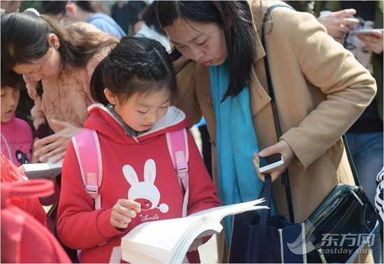 “我读的是朱自清的《冬天》。”虹桥中学六年级学生杜微兴奋地告诉东方网记者。《冬天》是一篇抒情散文,也是他最喜欢的文章。杜微说自己从小特别喜欢雪,可是上海下雪的机会很少,今年也没有下过大雪,觉得有些遗憾。她也是《朗读者》节目的“粉丝”,听说朗读亭来了,一早就和父母一起从嘉定赶了过来。“我是三月份出生,朗读也是我送给自己最独特的一份生日礼物。”