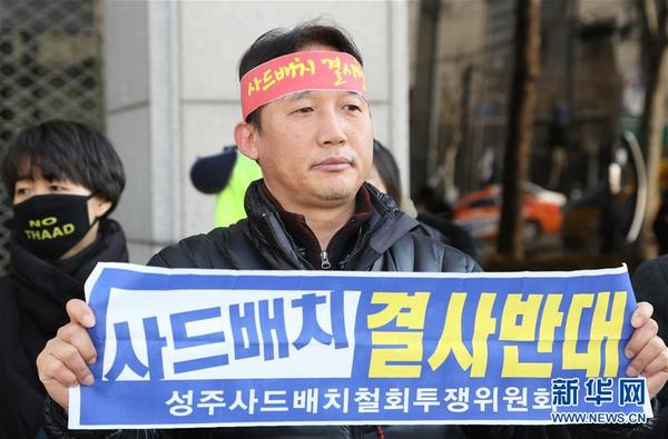2月27日,韩国民众在位于首尔的乐天集团总部前举行抗议示威活动,并高举反对“萨德”的标语。