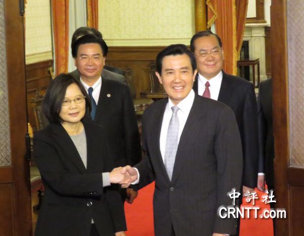 前台湾地区领导人马英九和台湾地区领导人蔡英文握手(图片来源:中评社)