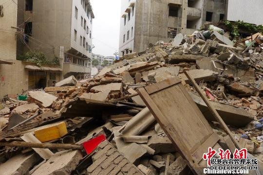 “幸亏他们夫妇提前发现墙出现了裂缝,挨家挨户敲门呼喊,才让我们全部安全撤离。”站在楼房垮塌的废墟前,一名住户这样告诉记者。9日凌晨,贵州省遵义市汇川区高桥镇鱼芽社区河边组一栋居民楼一居民楼垮塌,没有造成人员伤亡。该居民楼高7层,有68名住户。记者在现场看到,一片废墟里散落着碎砖块和居民家中的沙发、塑料凳、床单等物品,在废墟四周已拉开了警戒线,当地消防、供电等部门正在现场有序调查了解情况,处置善后事宜。