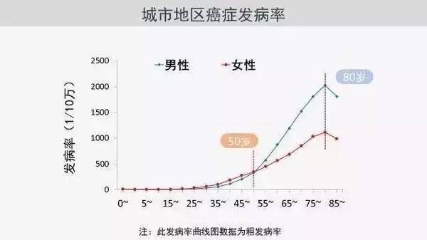 第一:据统计,癌症从40岁之后发病率快速提升,80岁时达到高峰。