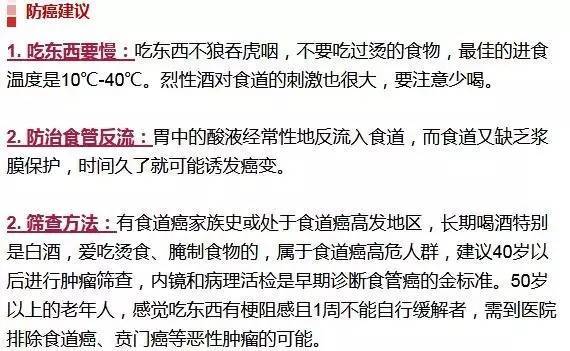 3. 筛查方法:出现吞咽不适、打嗝等胃部不适,早进行胃镜检查,45岁以上有上述不良饮食习惯者及有胃病史的人,每年查1次胃镜。