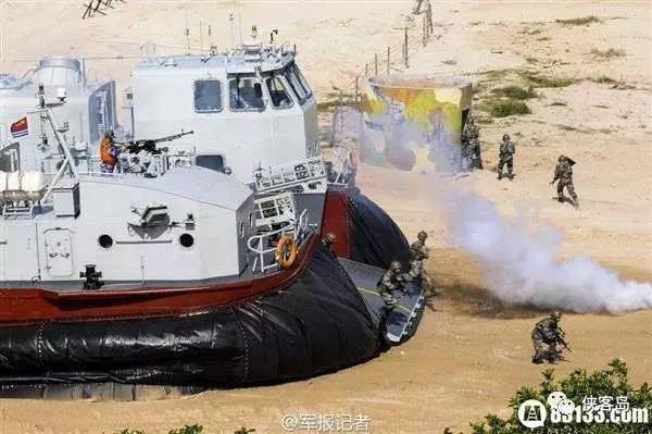 比如,拿726气垫登陆艇来说,它能够以60节的速度高速冲滩(一般两栖车辆的水上速度是6、7节),仅冲滩速度就缩减8倍以上,整个登陆舰编队全部登陆所需的时间,也缩减为原先的几分之一;发动登陆作战时,传统的换乘环节可以先期在坞舱内完成,中国海军陆战队在面对敌方滩头火力的时间不仅大为缩减,必然会减少伤亡。