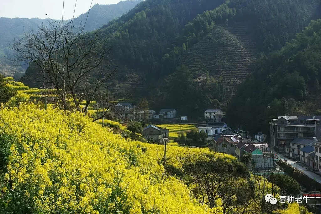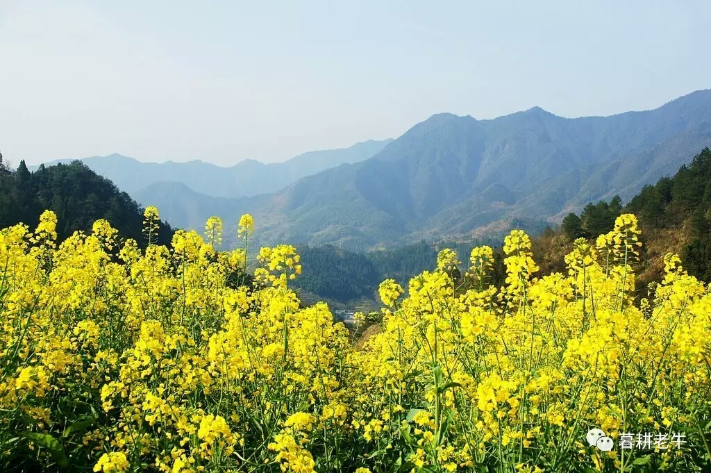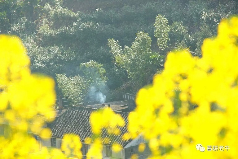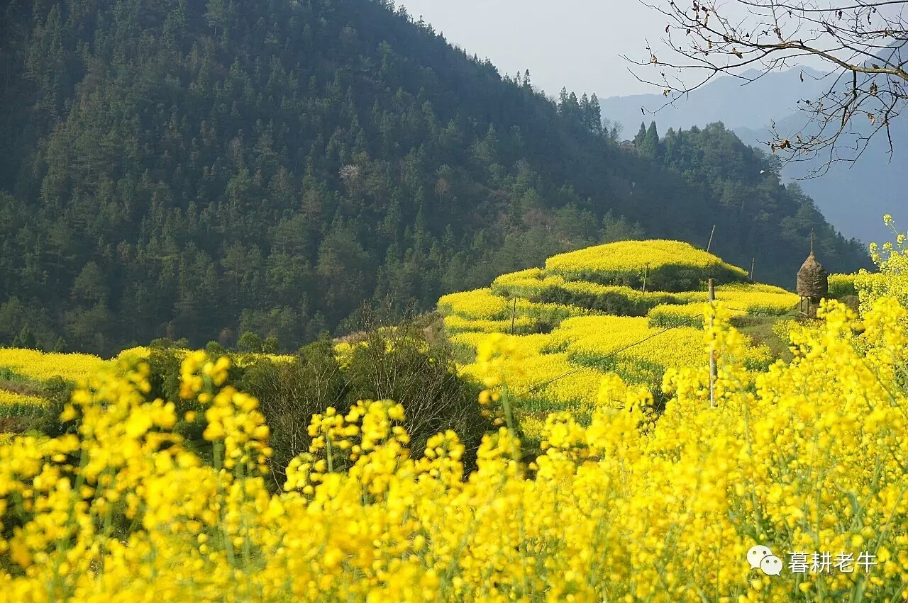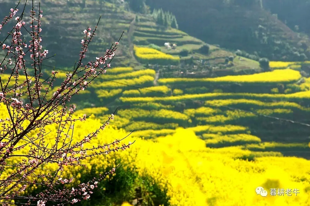 放眼对面的山坡,一层层的梯田被这黄色画出了分明的层次,在晨光下或明或暗的,层层叠叠,曲曲弯弯,如少女美丽的曲线。透过晨光照射下的金色、透明的油菜花,可以望见远处的大山,甚至山坳里那点点的屋舍。