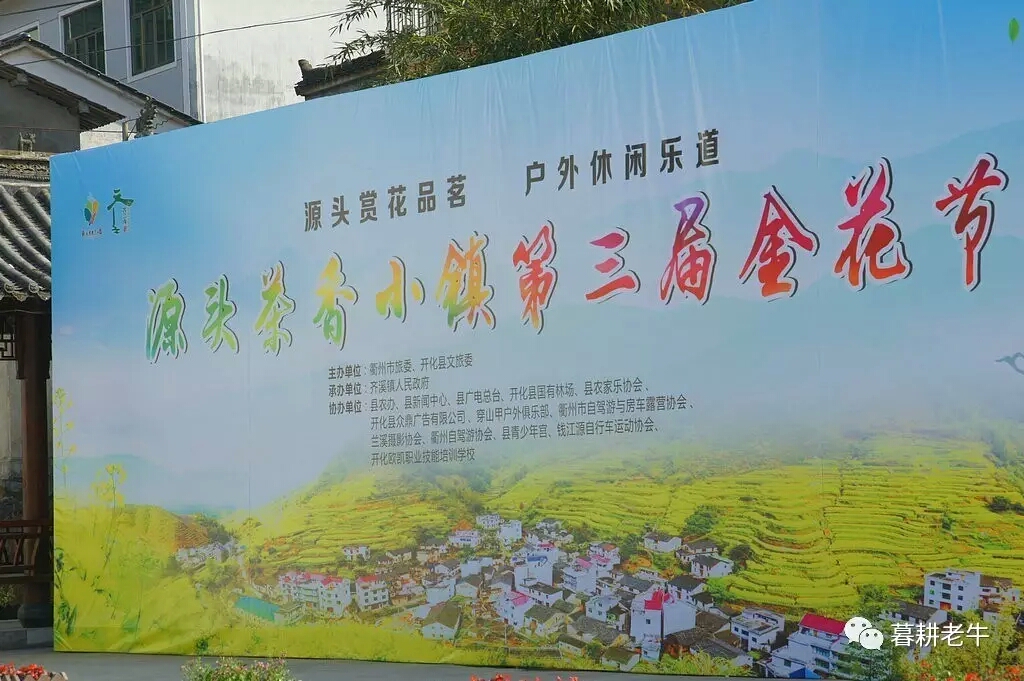 进入村庄,村口广场上竖有一屏,上有文字:源头茶香小镇第三届金花节。原来这里是开化著名的茶乡,而今年已是他们举办油菜花节的第三年了,一旁还有专为金花节设立的旅游接待室,好像已具规模。