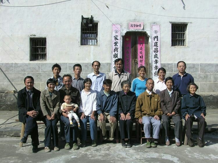 吃中饭前,把村里能叫来的乡亲叫来拍了集体照。照片中前排右四是当年队长南山老伯的“堂屋”(队长夫人),右三者是队长儿子俊德。