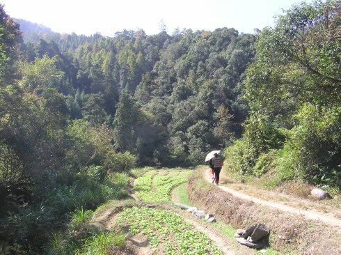 下午三点了,要离开了。忠南告诉我,他妈在前头路边等着,想见我一面。果不然,葱绿山边的小路旁,已伫立着一位老妇人。