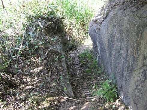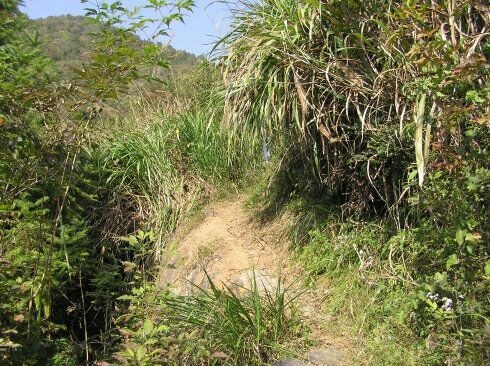 这样的路还算是清晰可见的。右手边是山壁,左边脚下是山沟。脚下一不留神就可能摔下山坡去。因此要尽量靠右走。