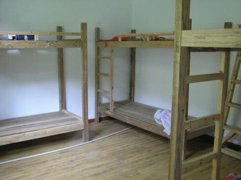 主人领着我们楼下楼上,一间一间地参观,见到空房间里的摆设,介绍说,将来有人来,就可以安排住在这个房间。像这样已经放进双层床的房间,楼上一间楼下两间,每间可住6人。也就是说,这幢楼里可接待近20人来旅游小住。